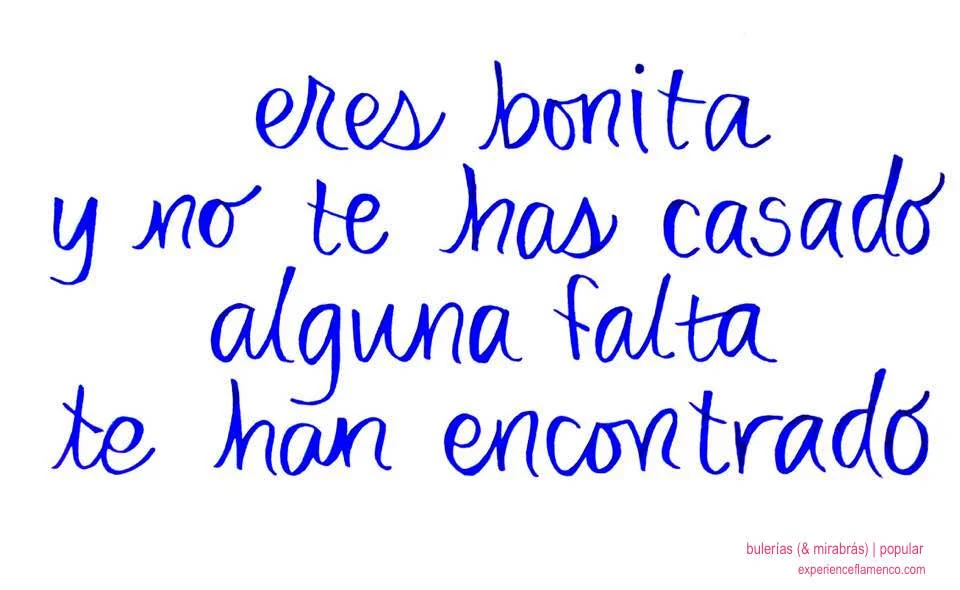 This verse is also a Mirabrás juguetillo. I'll publish a video of this next time, so stay tuned! (You can learn more about what a juguetillo is - and a lot of other stuff about flamenco - here at FLAMENCOPOLIS.