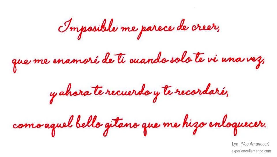 And so, today I have a video clip to share with you of a little girl from Jerez named Triana dancing bulerías (her signature dance of course) for Rafael Amargo. She starts off by singing the following letra then dances while her dad sings and plays guitar for her. You're going to love it.