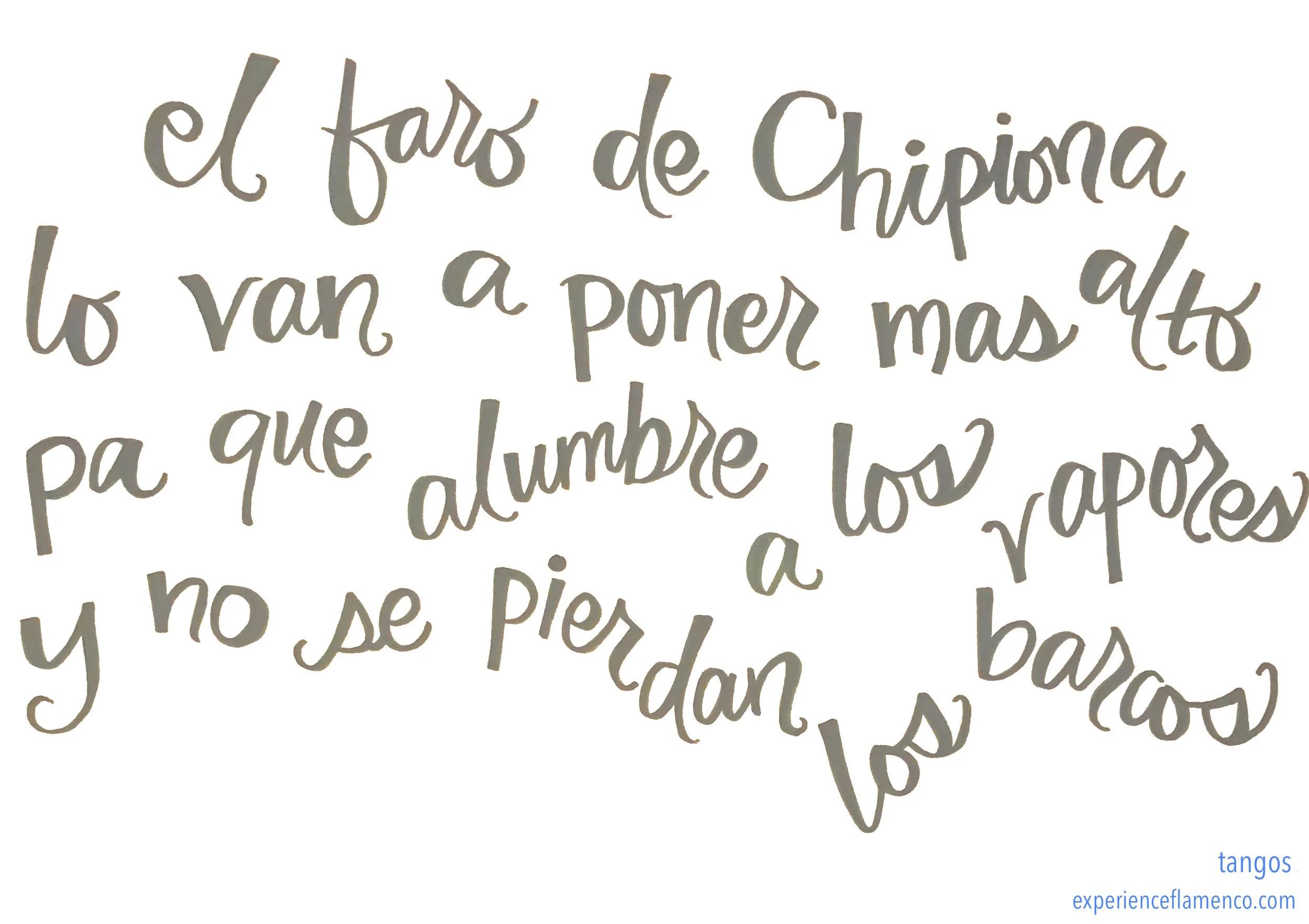 Here is a tangos letra along with a video of José Mercé singing it accompanied by Moraíto Chico.