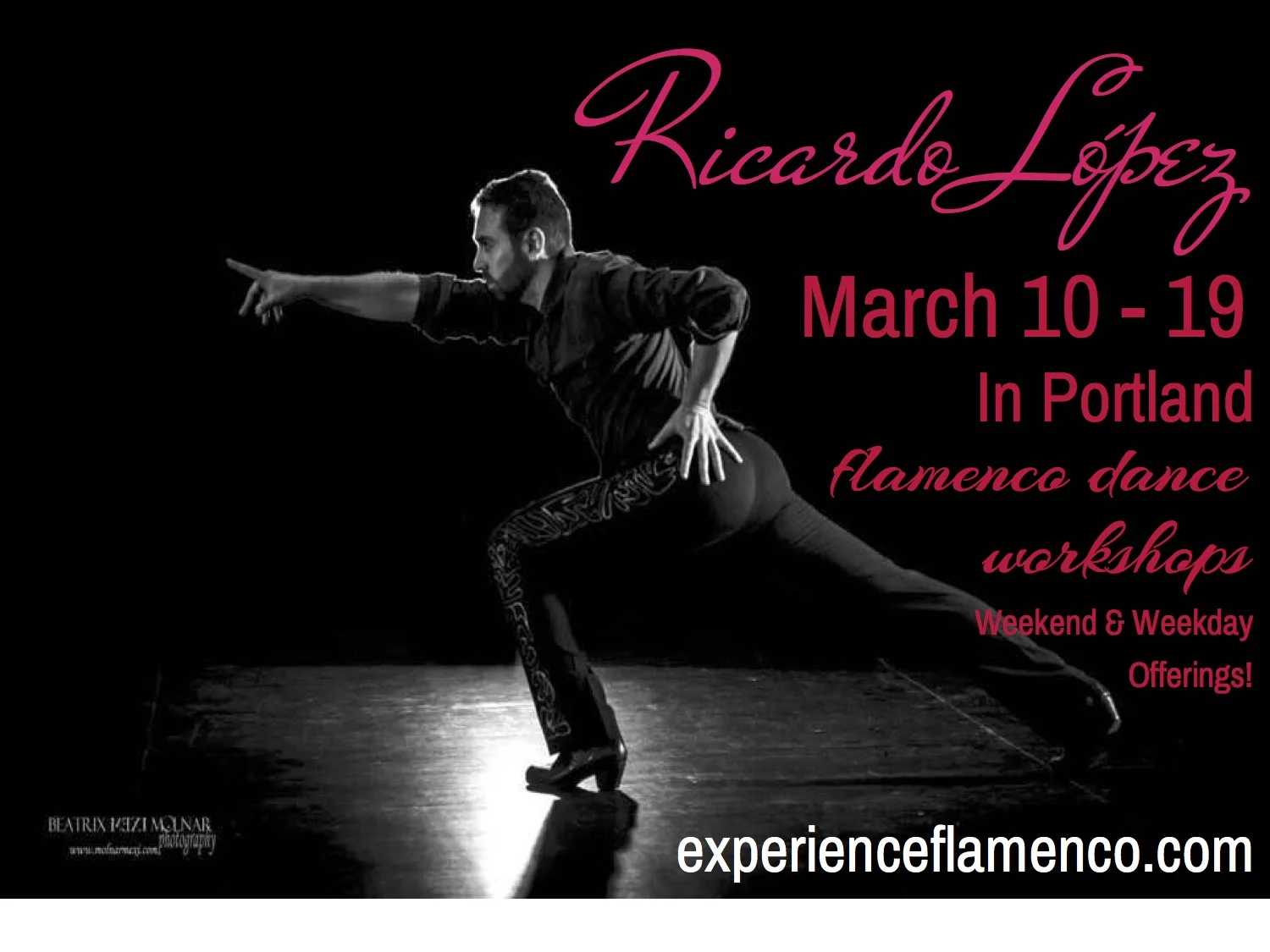 To learn flamenco is to live the culture, the flavor, and the arte of it all. Spending intimate time with a true flamenco is an essential part of flamenco learning. Experience the same quality of instruction you find in Spain without purchasing a plane ticket or dealing with exchange rates. It's been over two years since we've had Ricardo in Portland, and at that time, even before the workshops were over, students began asking how soon he would return. Finally, he's coming back!